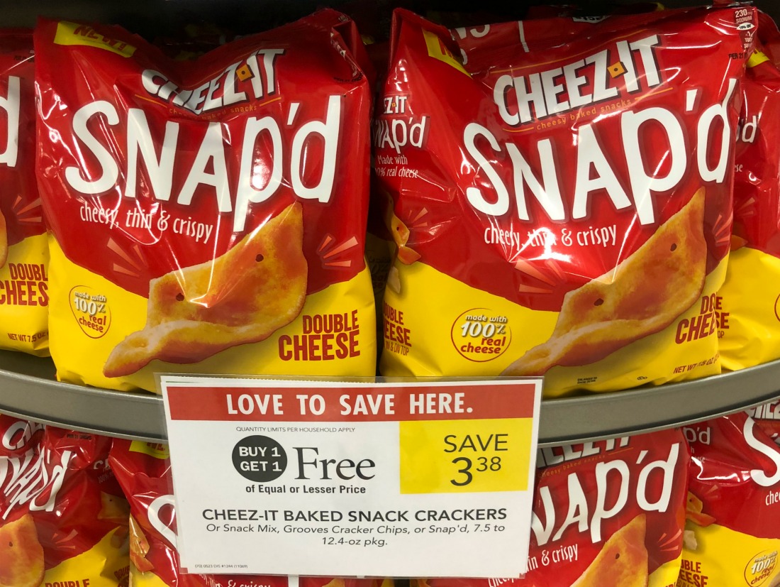 Cheez-It Snap'd Baked Snacks only 0.49 at Kroger Sunshine Cheez-It Snap'd Baked Snacks (7.5 oz) $2.49 wyb 6 Use $1.00/1 Cheez-It Baked Snack Product (7 oz+) 850 Kellogg's Family Reward points needed - Limit 4 Like coupons per shopping trip Pay as low as $1.49 Submit for $0.75/1 Cheez-It Snap'd (7.5 oz) ibotta Rebate - Limit 5 Cheez-It Snap'd Cheese Crisps are $0.65 at Kroger! Well this is a nice deal to wake up to. Open up your Ibotta* accounts and see if you have a FREE rebate for Cheez-It Snap'd. If you do, head to Kroger and add a bag to your shopping cart. These Cheez-It Snap'd are $3.79 for me so it truly doesn't make it a freebie BUT it's close enough. Pay $0.65 instead which is a great savings. Cheez-It Snap'd at Kroger for Only $1.99 Plus we have $1.00/1 Cheez-It Snap'd Kroger Digital Coupon to use on this deal That will make the final price just $1.99 each. Kroger Deal Thru 1/26. Buy (1) Cheez-It Snap'd Cheesy Baked Snacks Double Cheese 7.5 oz $2.99 (Reg $3.79) Use (1) Save $1.00 on buy ONE (1) Cheez-It Snap'd Kroger Digital Coupon $1.99 after Kroger Digital Coupon Cheez-It Snap'd Crackers Only $1.00 at Target - Printable Coupons Cheez-It Snap'd Crackers Only $1.00 at Target Save BIG through 5/25! Through 5/25, Cheez-It Shap'd crackers are on sale for $2.50 each when you buy 2 at Target. Use printalbe coupons with an Ibotta rebate offer to get each bag for only $1.00, regularly $3.39!